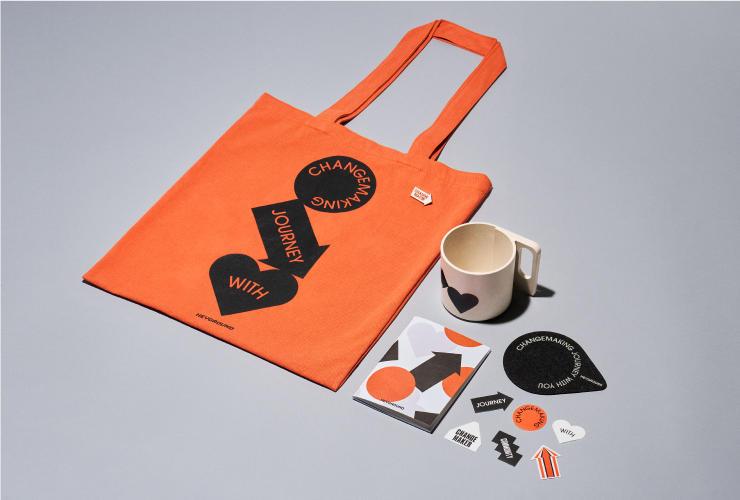 헤이그라운드의 첫 굿즈가 탄생했어요. 이번 굿즈는 헤이그라운드의 슬로건 ‘Changemaking Journey with You’를 콘셉트로, 길을 찾는 과정에 도움을 주는 ‘표지판’의 형식을 그래픽 모티브로 디자인했어요. 키 비주얼에는 의도적으로 ‘You’가 빠져있는데요, 사용자(You)가 물품과 함께하며 빠져있는 문장이 완성되기를 바라며 기획했습니다. 에코백, 리트컵 머그, 코스터, 배지, 스티커, 노트 총 6종의 물품이 준비되어 있어요. 헤그 굿즈는 바로 오늘, 월요일부터 성수 시작점 1층과 서울숲점 10층에 준비된 무인 매대에서 판매합니다. 실물이 궁금하신 분들은 방문해서 살펴보세요.