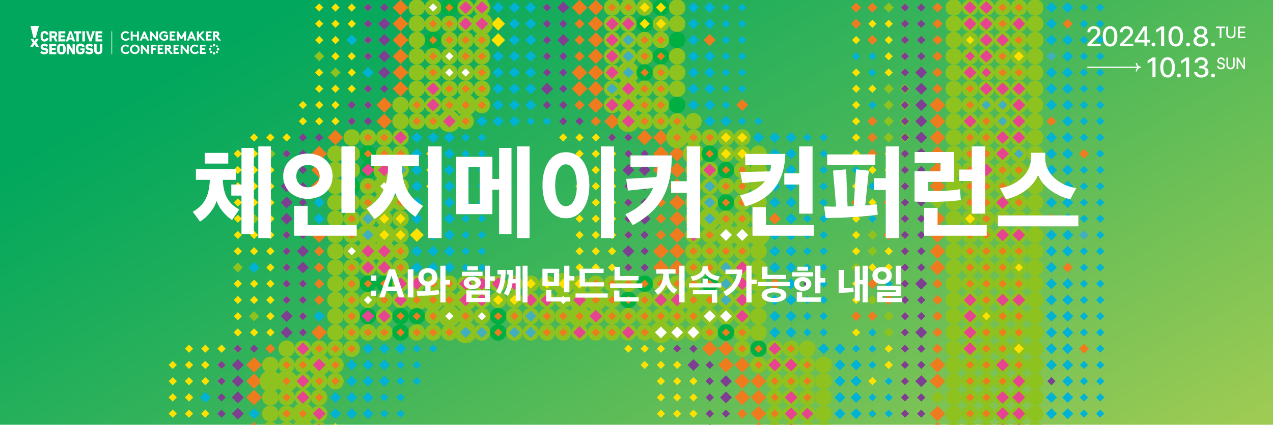 2024 체인지메이커 컨퍼런스가 10월 8일부터 13일까지 헤이그라운드에서 열립니다. ‘AI와 함께 만드는 지속가능한 내일’을 주제로 최근 주목받고 있는 인공지능(AI)의 산업적 측면을 넘어, 사회적 책임과 올바른 활용성에 대해서 다룹니다.
