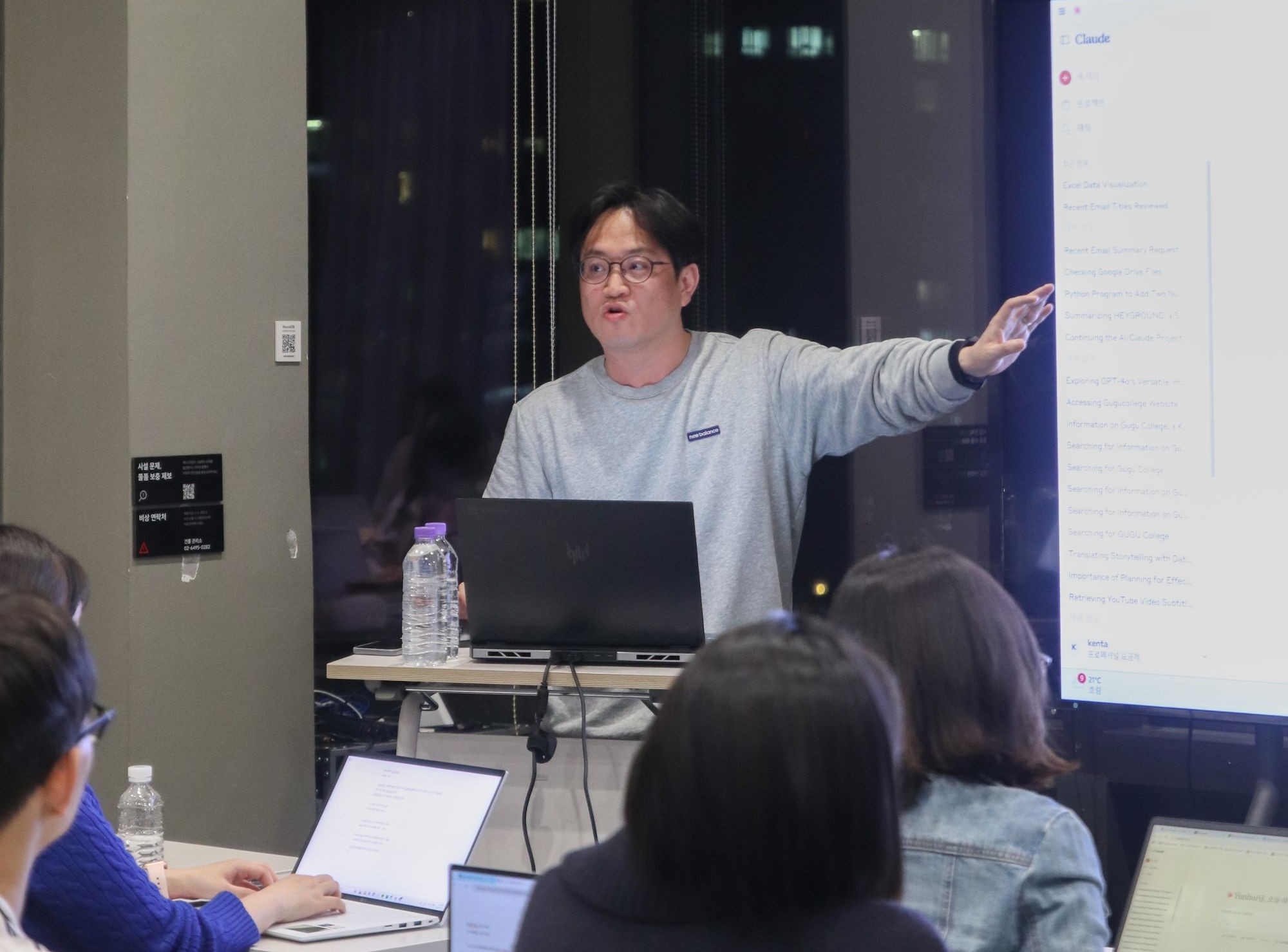 박용님은 구구컬리지에서 실제로 활용 중인 다양한 AI 툴을 소개하면서 직관적이고 현실적인 팁을 아낌없이 전해주셨어요. 어떤 도구를 언제, 어떻게 쓰면 좋은지, 프롬프트는 어떻게 짜야 원하는 결과를 얻을 수 있는지, 효율을 확 끌어올리는 프롬프트는 어떻게 구성하는지 등 하나하나 실습처럼 따라가며 익힐 수 있는 시간이었죠.